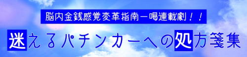 連載第二回 「迷えるパチンカーへの処方箋集」です。 【コンテンツ】 Q.自分は精神的に強くなれると思いますか? Q.パチンコに行ったら打たないと気が済みません。 Q.1円パチンコと4円パチンコに混ぜこぜで通っていると金銭感覚がおかしくなります。 Q.私は待てない男、待てない女です。 Q.毎月、一定の金額までは勝てるのですが、それから下り坂になります。 ※ 「迷えるパチンカーへの処方箋集」は、こちらでも公開をしています。 |