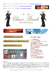 月刊カオスブレイク・号外のご紹介 ※ 月刊誌の写真やリンクから、「特設ページ」に移動ができます。 ※ 工事中のページがございますが、順次、更新をしていきます。 |