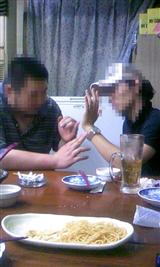 2010年7月の上旬に大阪でプチ懇親会をされました。上の写真はメロリンQさんとラオウさんのツーショットです。 この写真は、左からはびきのさん、めろりんQさん、素人さんです。 |
