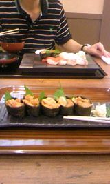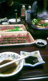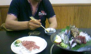 イタチさんはお忙しい身ですので日帰りでのご帰宅となりました。 短い時間でしたが、当地のダイナムでご一緒できたので嬉しかったです。 この写真の宝船(刺身の盛り合わせ)は見た目より内容が・・・ サザエは珍味でした(笑) |