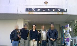 2010年3月28日(日)の「大阪淀川警察署」での一枚です。「サムロー事件」解決の為に皆さんが集まって下さいました。お世話になりました。 結局、サムロー氏は何の連絡もなく逃亡したのですが、この一件で世間のご意見が固まりました。 |