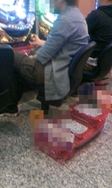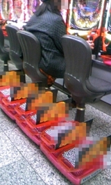 左の写真が大ふへん者さんです。いつの間にか鬼武者でドル箱2つ分も出されてました。 右の写真が奥様のピカチュウさんです。写真を撮影するタイミングで動かれたので・・・ シュチュワーデスをされておられましたのでかなりの美人です。 既に約1000枚のレシートを持たれてました。 「私達の本業(ご夫婦で塾の先生です)はボランティアに近いので、本当にパチンコでの収入だけが頼りなんですよ〜」 いや、本当にそうだと思いました。 |